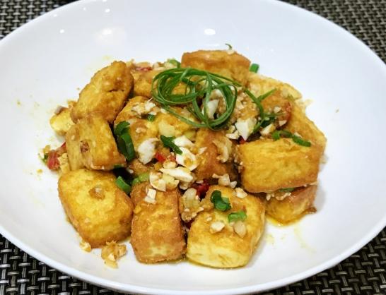 • 金沙豆腐: 鹹蛋黃裹炸豆腐,鹹香酥脆,很下飯。