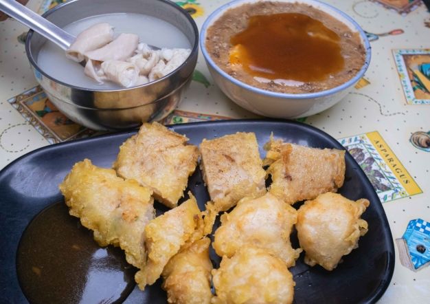 • 介紹: 南部口味的碗粿!米漿蒸得軟嫩綿密,有點像更紮實的布丁口感。內餡有瘦肉塊、香菇、鹹蛋黃(有時是半顆)。精髓在於淋上的醬油膏和蒜泥,鹹香夠味。搭配一碗魚羹湯更棒。缺點:口味偏重,醬油膏比較鹹,可以請老闆少淋一點。