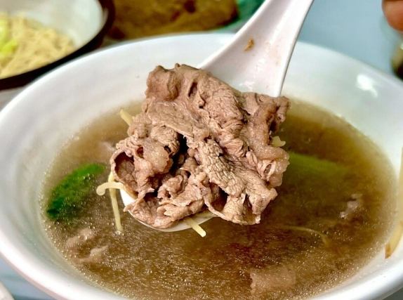 這簡直是家樂福美食街的一大亮點!把臺南名物搬進來,讓北部的朋友不用大老遠南下也能解饞(雖然地道度可能有差別)。我吃過幾家不同分店的,做法大致相同:新鮮溫體牛肉薄片鋪在碗底,由店員用滾燙的高湯現場衝下去,瞬間把牛肉燙到粉嫩的5-7分熟。湯頭清甜,帶著薑絲和米酒的香氣,牛肉片口感軟嫩,沾點醬油膏配薑絲,真的很舒服。冬天來一碗特別暖胃。提醒: 牛肉熟度看店員手法和個人接受度,不敢吃太生的可以請店員燙熟一點。品質有時會波動,湯頭偶爾偏鹹或淡。